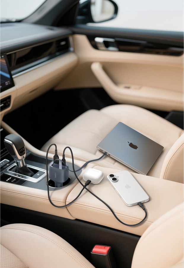 ที่ชาร์จในรถยนต์ 75W 2 พอร์ตพร้อมสาย USB-C แบบเก็บได้ ออกแบบมาสำหรับการชาร์จด้วยความเร็วสูงในขณะเดินทาง เพียงเสียบเข้ากับช่องจุดบุหรี่ของรถยนต์ก็สามารถชาร์จอุปกรณ์ได้สูงสุด 3 เครื่องพร้อมกัน สาย USB-C แบบเก็บได้ยาว 75 ซม. ให้พลังงานสูงสุด 60W เหมาะสำหรับชาร์จแล็ปท็อปส่วนใหญ่ ขณะที่พอร์ต USB-C และ USB-A เพิ่มเติมชาร์จโฟน แท็บเล็ต และอุปกรณ์อื่นๆ ได้ มาพร้อมเทคโนโลยี Intelligent Power Allocation (IPA) ทำให้มั่นใจในการชาร์จที่เหมาะสมสำหรับทุกอุปกรณ์ที่เชื่อมต่อ และ USB-C Power Delivery (PD) ชาร์จเร็วทั้ง iPhone และ Samsung Galaxy รวมถึงผลิตภัณฑ์ที่ใช้ USB-C อื่นๆ หลากหลาย