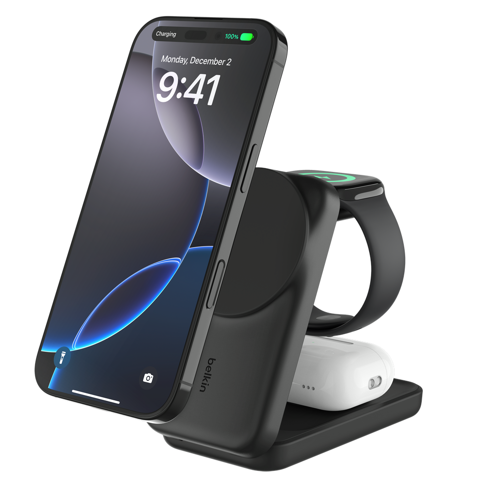 ออกแบบโดยคำนึงถึงการพกพา UltraCharge 3-in-1 มาในรูปแบบพับได้ น้ำหนักเบา เหมาะสำหรับการเดินทาง แต่ยังคงชาร์จอุปกรณ์ได้สูงสุด 3 เครื่องพร้อมกัน เหมาะสำหรับผู้ที่ต้องการชาร์จพร้อมกันในครั้งเดียว ผู้ชอบนักเดินทาง และผู้ใช้ที่ใส่ใจในดีไซน์ที่ต้องการเทคโนโลยีประจำวันแบบเรียบง่าย UltraCharge 3-in-1 ได้ผสมผสานประสิทธิภาพ ความยืดหยุน และความง่ายในการใช้งานเข้าด้วยกันอย่างลงตัว
